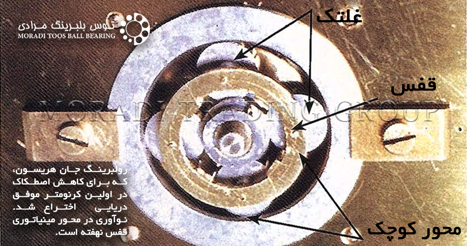 اولین بیرینگ غلتکی کاربردی در قفس (محصور) در اواسط دهه 1740 توسط وی برای کورنومتر و ساعت دریایی مدل H3 اختراع شد. این دستگاه سومین زمان نگدار هریسون بود و وی در آن از بیرینگ برای یک حرکت نوسانی بسیار محدود استفاده می کرد، اما هریسون از یک حرکت نوسانی بسیار محدود استفاده میکرد، وی همچنین به طور همزمان از یک بیرینگ مشابه با کاربرد واقعی چرخشی در یک ساعت تنظیم کننده استفاده کرد. هریسون هفده سال بر روی سومین «ساعت دریایی» کار کرد، اما علیرغم هر تلاشی، ساعت دقیقاً آنطور که او میخواست عمل نمیکرد. مشکل این بود که هریسون اطلاعات کافی در مورد فیزیک پشت فنرهای مورد استفاده برای کنترل چرخ های تعادل را به طور کامل درک نمی کرد و زمان بندی چرخ ها هم زمان نبود، مشخصه ای که بر دقت آن تأثیر می گذاشت. دنیای مهندسی قرار بود تا دو قرن دیگر به طور کامل خواص فنرها را برای چنین کاربردهایی درک نکند. با این وجود، از این اختراع و ساخت آن چیزهای زیادی می توان آموخت. مطمئناً در این ماشین، هریسون دو میراث ماندگار را برای جهان به جا گذاشت - نوار دو فلزی و بیرینگ در قفس (محصور).